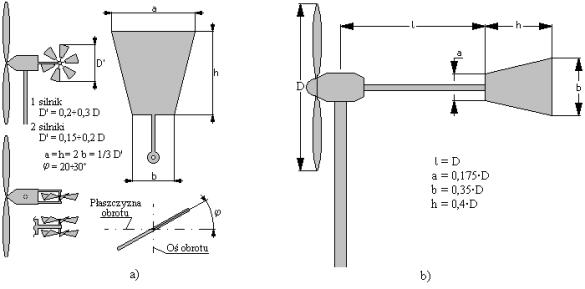 W przypadku odchylania wirnika w płaszczyźnie pionowej (rys. 4.) nie ma potrzeby skośnego ustawiania steru tylnego, który jest zazwyczaj na stałe zamocowany do obrotowej wieżyczki.
